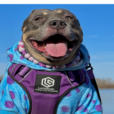 LeGrande Dog supreme harnesses, collars and leashes are made of high quality materials, designed with safety, comfort and durability. We have put ours to the test with our XL bullies and it has withheld all our outdoor adventures! We highly recommend shopping LG when you are shopping for durability, style and comfort for your pup.